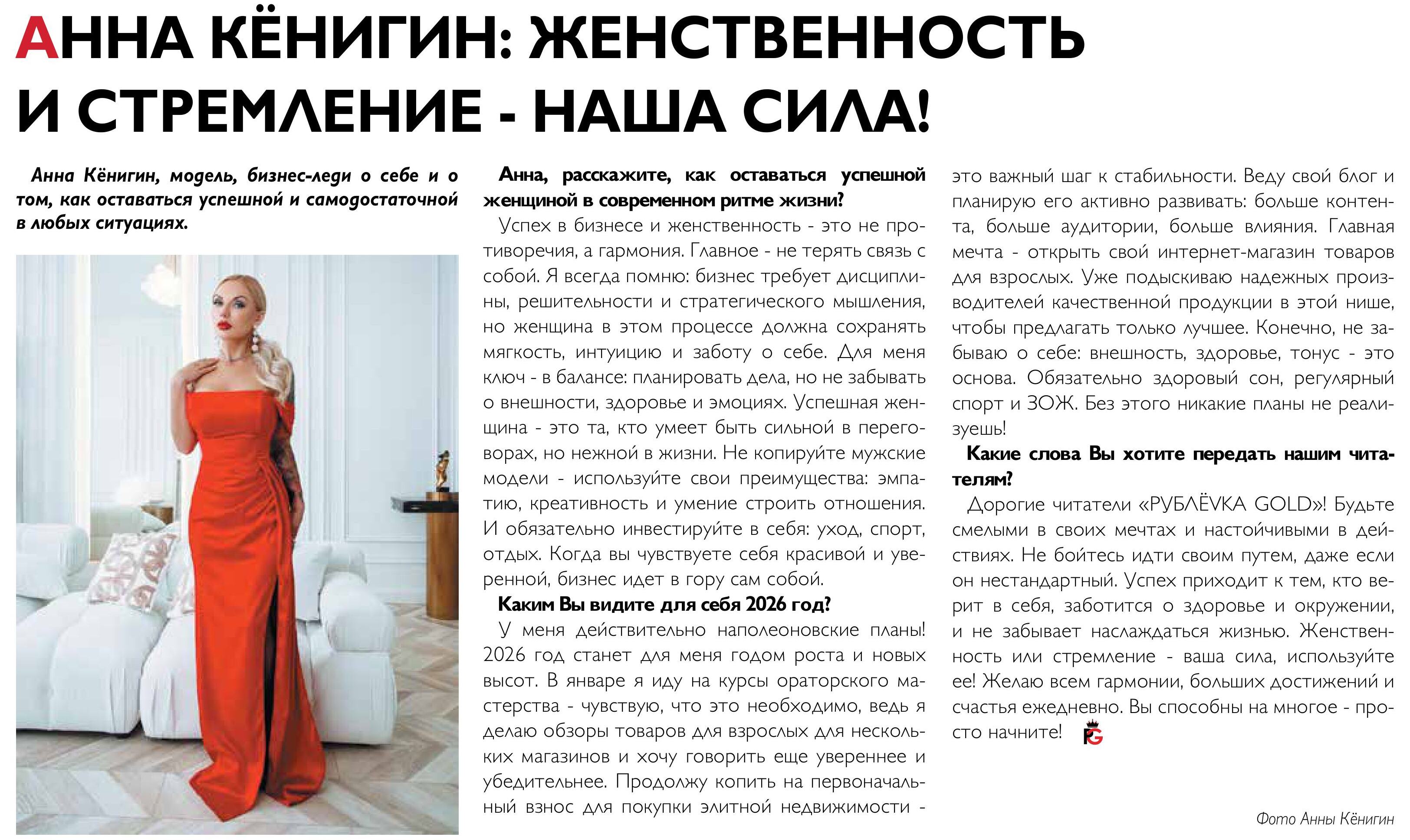 АННА КЁНИГИН: ЖЕНСТВЕННОСТЬ И СТРЕМЛЕНИЕ - НАША СИЛА!