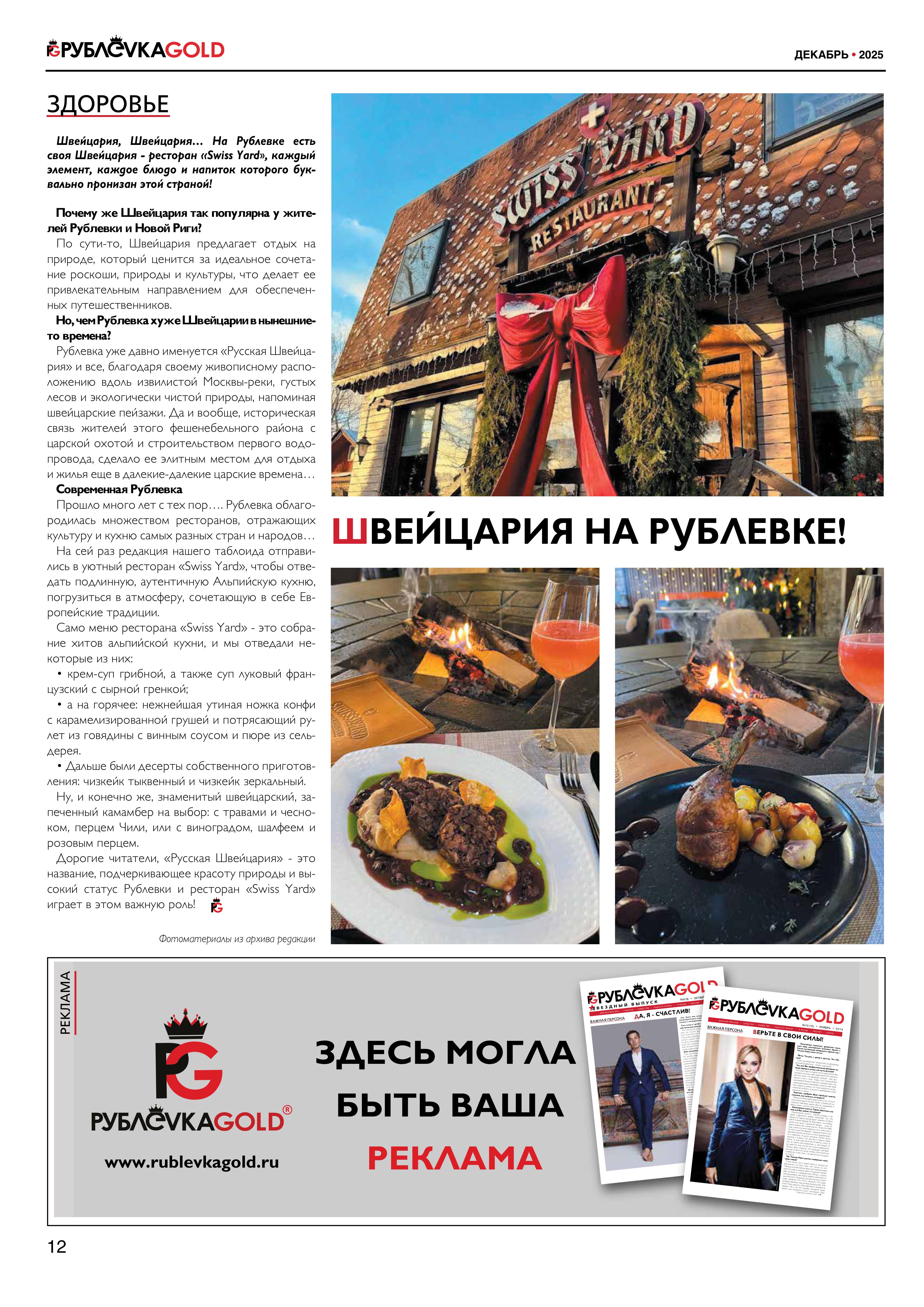 ЗДОРОВЬЕ : ШВЕЙЦАРИЯ НА РУБЛЕВКЕ!